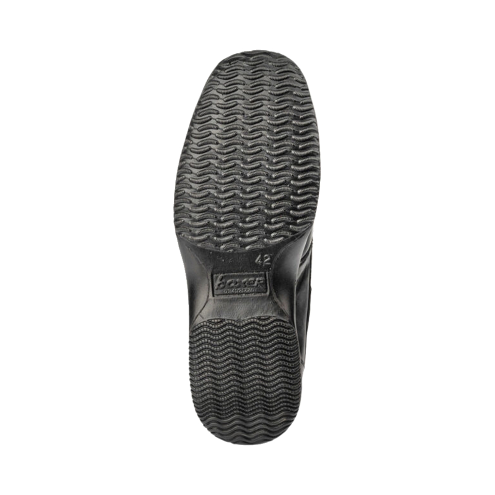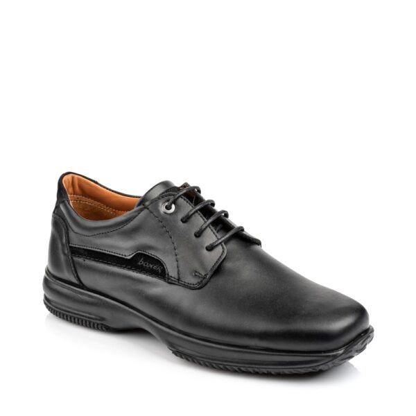 Ανδρικά παπούτσια της εταιρείας Boxer, ελληνικής κατασκευής, σε μαύρο χρώμα, εξωτερικά κατασκευασμένα από εξαιρετικής ποιότητας δέρμα, με κορδόνια, διαθέτουν μαλακό δερμάτινο πάτο επενδυμένο με latex και αντιολισθητική σόλα από πολυουρεθάνη για σταθερό περπάτημα. Προσφέρουν άνεση σε κάθε σας βήμα!
