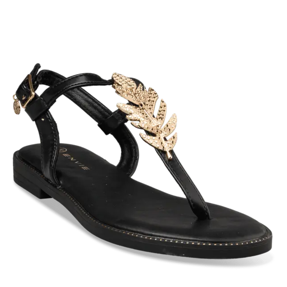 Γυναικεία flats της ελληνικής εταιρείας Envie, σε μαύρο χρώμα. Είναι εξωτερικά κατασκευασμένα από εξαιρετικής ποιότητας συνθετικό δέρμα, διαθέτουν πάτο επενδυμένο με latex για μεγαλύτερη άνεση, και αντιολισθητική σόλα από πολυουρεθάνη για άνετο και σταθερό περπάτημα. Μία στυλάτη επιλογή για να ολοκληρώσει το ντύσιμό σας.