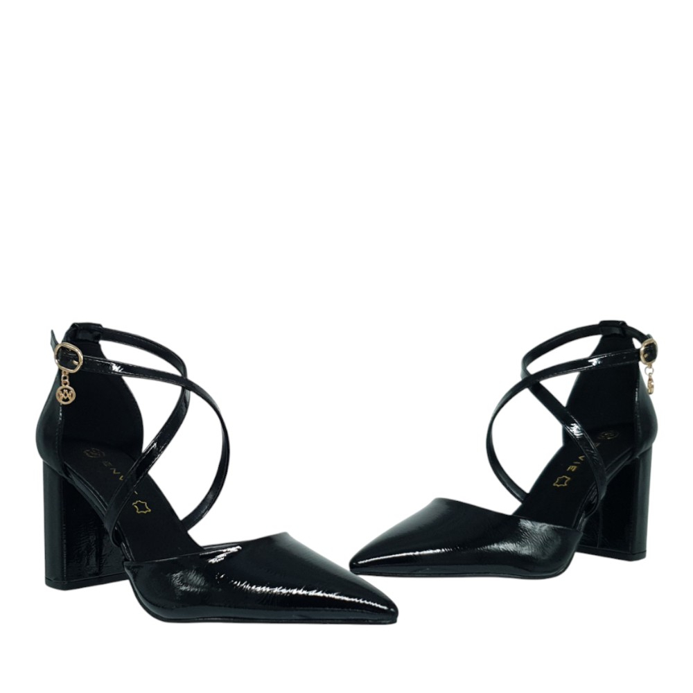 Γυναικείες γόβες της Ελληνικής εταιρείας Envie, σε μαύρο χρώμα. Είναι κατασκευασμένα από εξαιρετικής ποιότητας υλικά, διαθέτουν μαλακό πάτο επενδυμένο με latex για μεγαλύτερη άνεση, λεπτό τακούνι και αντιολισθητική σόλα από πολυουρεθάνη για άνετο και σταθερό περπάτημα. Μία άνετη επιλογή για να ολοκληρώσει το ντύσιμό σας.