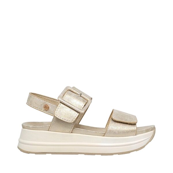 Γυναικεία flatforms της ισπανικής εταιρείας Xti, σε χρυσό χρώμα. Είναι κατασκευασμένα από εξαιρετικής ποιότητας υλικά, διαθέτουν ανατομική σόλα επενδυμένη με αφρώδες υλικό για περισσότερη άνεση και αντιολισθητική σόλα από πολυουρεθάνη για άνετο και σταθερό περπάτημα. Διαθέτουν πιστοποιητικό VEGAN από τον παγκόσμιο οργανισμό PETA. Μία στυλάτη επιλογή για να ολοκληρώσει το ντύσιμό σας.