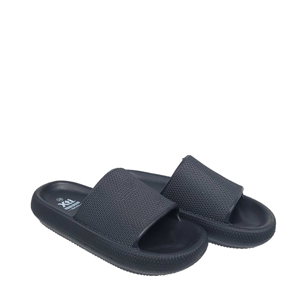 Γυναικεία παντόφλες της ισπανικής εταιρείας Xti, σε μαύρο χρώμα. Είναι κατασκευασμένα από εξαιρετικής ποιότητας υλικά, διαθέτουν μαλακή ανατομική σόλα επενδυμένη με latex για περισσότερη άνεση και αντιολισθητική σόλα από πολυουρεθάνη για άνετο και σταθερό περπάτημα. Διαθέτουν πιστοποιητικό VEGAN από τον παγκόσμιο οργανισμό PETA. Μία άνετη επιλογή για να ολοκληρώσει το ντύσιμό σας.