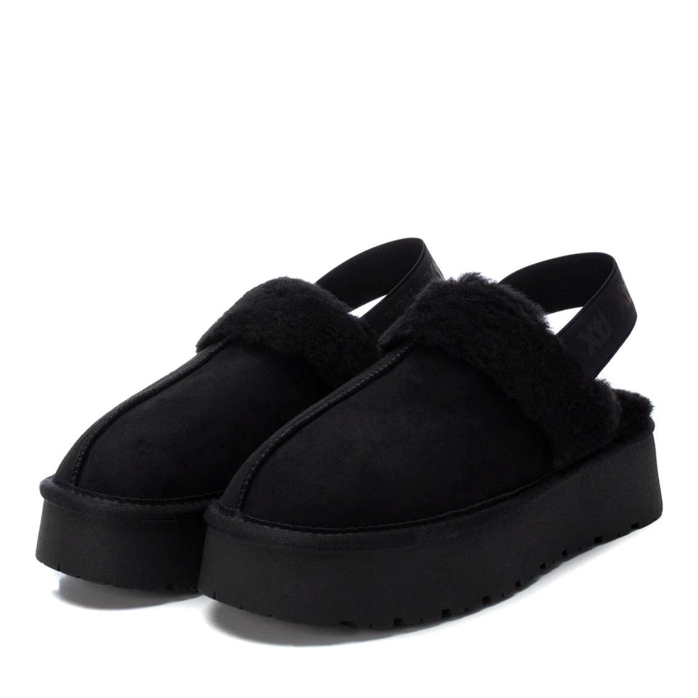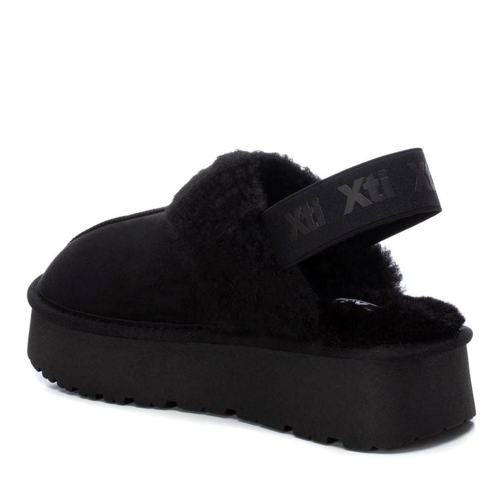 Γυναικεία παντόφλες της ισπανικής εταιρείας Xti, σε μαύρο χρώμα. Είναι κατασκευασμένα από εξαιρετικής ποιότητας υλικά, εσωτερικά επενδυμένα με γούνα, και αντιολισθητική σόλα από πολυουρεθάνη για άνετο και σταθερό περπάτημα. Διαθέτουν πιστοποιητικό VEGAN από τον παγκόσμιο οργανισμό PETA. Μία άνετη επιλογή για να ολοκληρώσει το ντύσιμό σας.