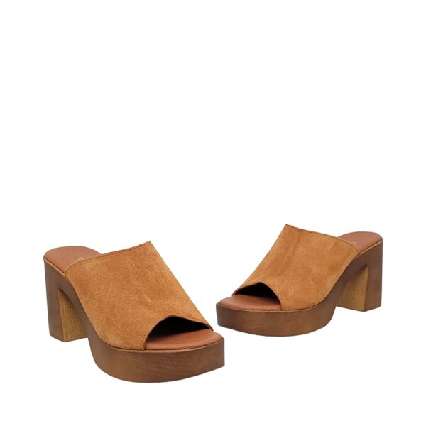 Γυναικεία mules της ελληνικής εταιρείας Fitrakis Collection, σε κάμελ χρώμα. Είναι κατασκευασμένα από εξαιρετικής ποιότητας δέρμα και συνθετικό δέρμα, διαθέτουν πάτο επενδυμένο με αφρώδες υλικό για μεγαλύτερη άνεση, χοντρό τακούνι και αντιολισθητική σόλα από πολυουρεθάνη για άνετο και σταθερό περπάτημα. Μία άνετη επιλογή για να ολοκληρώσει το ντύσιμό σας.