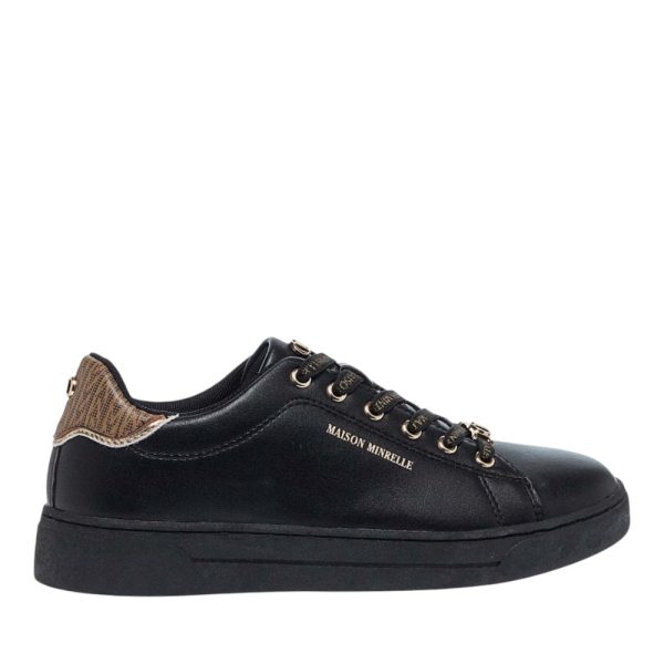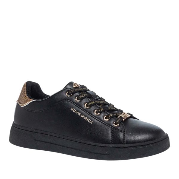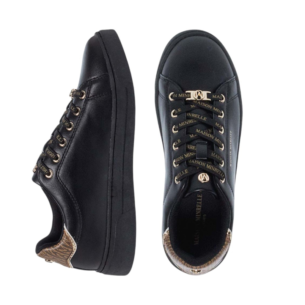 Γυναικεία Sneakers sneakers της εταιρείας Maison Minrelle. Σε μαύρο χρώμα με χρυσά κορδόνια και το λογότυπο της Maison Minrelle, ιδανικά για ένα μοναδικό urban στυλ.