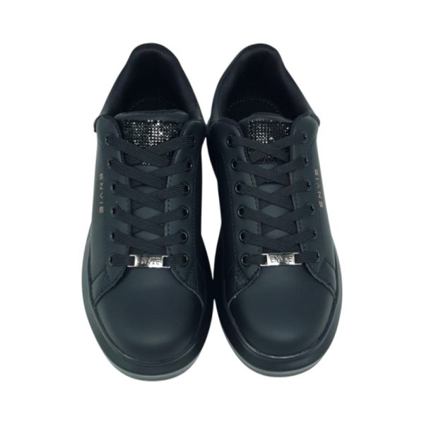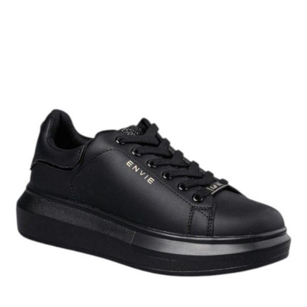 Γυναικεία Sneakers της ελληνικής εταιρείας Envie, σε μαύρο χρώμα, εξωτερικά κατασκευασμένα από εξαιρετικής ποιότητας υλικά, με ελαστικά κορδόνια, διαθέτουν δερμάτινο πάτο επενδυμένο με latex και αντιολισθητική σόλα από πολυουρεθάνη για σταθερό περπάτημα. Δίνουν στυλ σε κάθε σας εμφάνιση!