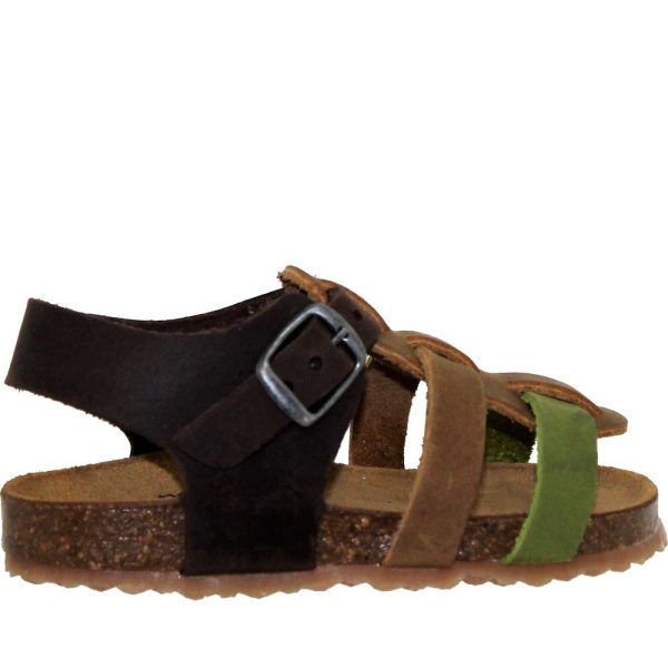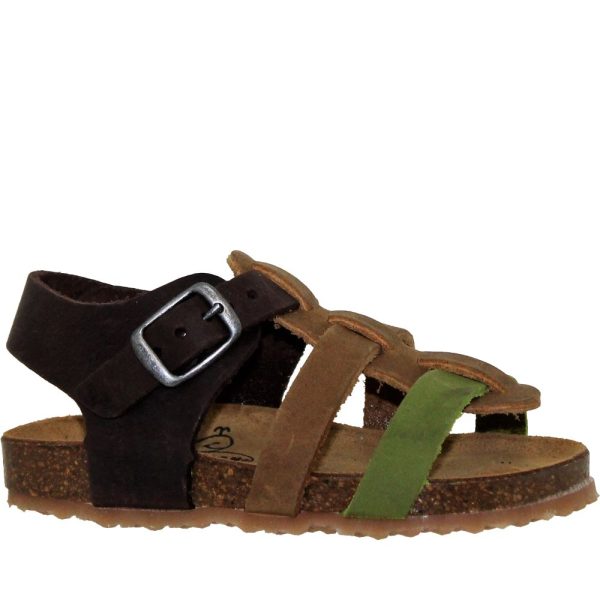 Παιδικά πέδιλα της ισπανικής εταιρείας Plakton, σε καφέ χρώμα. Είναι κατασκευασμένα από εξαιρετικής ποιότητας δέρμα, έχουν μικρή φόρμα, με βέλκρο , διαθέτουν δερμάτινο ανατομικό πάτο επενδυμένο με latex για περισσότερη άνεση και αντιολισθητική σόλα από πολυουρεθάνη για άνετο και σταθερό περπάτημα.