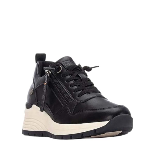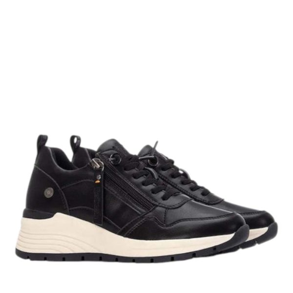 Γυναικεία Sneakers της ισπανικής εταιρείας Refresh, σε μαύρο χρώμα. Κατασκευασμένα από εξαιρετικής ποιότητας υλικά, με ελαστικά κορδόνια και φερμουάρ, διαθέτουν μαλακό memory sole επενδυμένο με latex και αντιολισθητική σόλα από πολυουρεθάνη για σταθερό περπάτημα. Διαθέτουν πιστοποιητικό VEGAN από τον παγκόσμιο οργανισμό PETA.Μία άνετη επιλογή που θα σας συντροφεύει σε κάθε σας έξοδο.