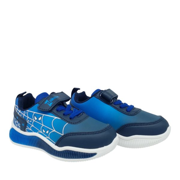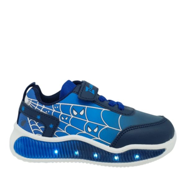 Παιδικά αθλητικά της εταιρείας Smart kids, σε μπλέ χρώμα, αδιαβροχά εξωτερικά κατασκευασμένα από εξαιρετικής ποιότητας υλικά με φωτάκια και velcto για άνετη εφαρμογή, εσωτερικά διαθέτουν μαλακό πάτο και αντιολισθητική σόλα από πολυουρεθάνη για σταθερό περπάτημα.