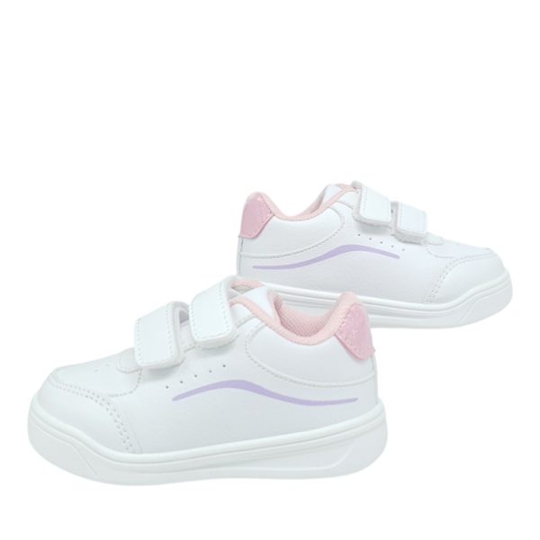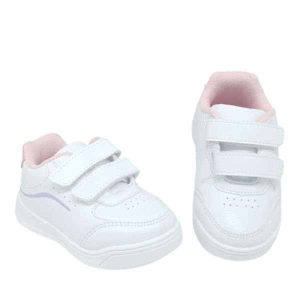 Παιδικά casuals της εταιρείας Smartkids, σε λεύκο-ροζ χρώμα, εξωτερικά κατασκευασμένα από εξαιρετικής ποιότητας υλικά, διαθέτουν velcro για άνετη εφαρμογή και μαλακό πάτο επενδυμένο με latex και αντιολισθητική σόλα από πολυουρεθάνη για σταθερό περπάτημα.