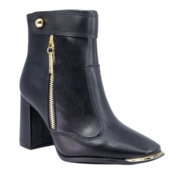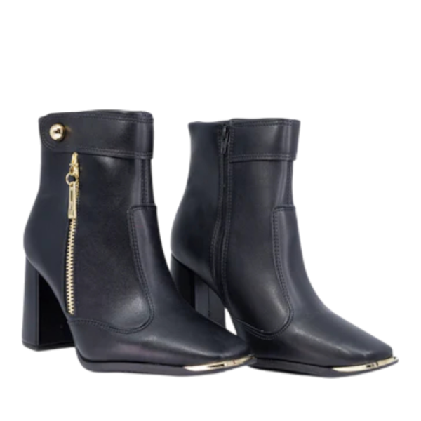 Γυναικεία μποτάκια της Βραζιλιάνικης εταιρείας Vizzano, σε μαύρο χρώμα. Είναι εξωτερικά κατασκευασμένα από εξαιρετικής ποιότητας συνθετικό δέρμα , διαθέτουν μαλακό πάτο επενδυμένο με αφρώδες υλικό για μεγαλύτερη άνεση και αντιολισθητική σόλα από πολυουρεθάνη για άνετο και σταθερό περπάτημα. Μία στυλάτη επιλογή για να ολοκληρώσει το ντύσιμό σας.