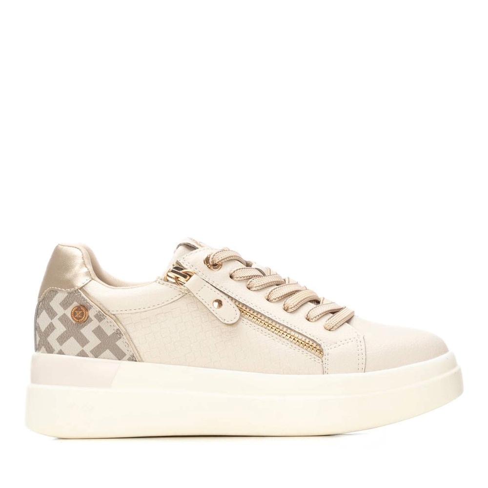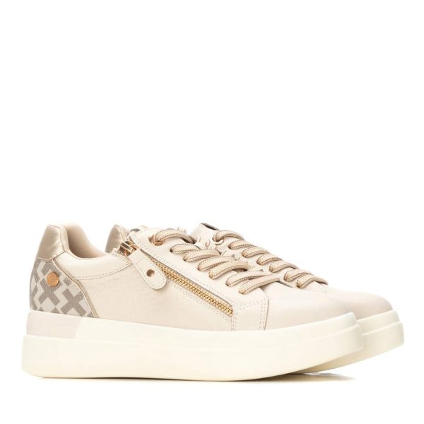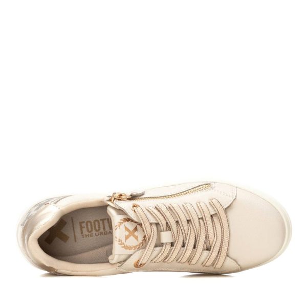 Γυναικεία Sneakers της ισπανικής εταιρείας Xti, σε μπεζ χρώμα. Κατασκευασμένα από εξαιρετικής ποιότητας υλικά, με κορδόνια, διαθέτουν μαλακό memory sole επενδυμένο με latex και αντιολισθητική σόλα από πολυουρεθάνη για σταθερό περπάτημα. Διαθέτουν πιστοποιητικό VEGAN από τον παγκόσμιο οργανισμό PETA.Μία άνετη επιλογή που θα σας συντροφεύει σε κάθε σας έξοδο.