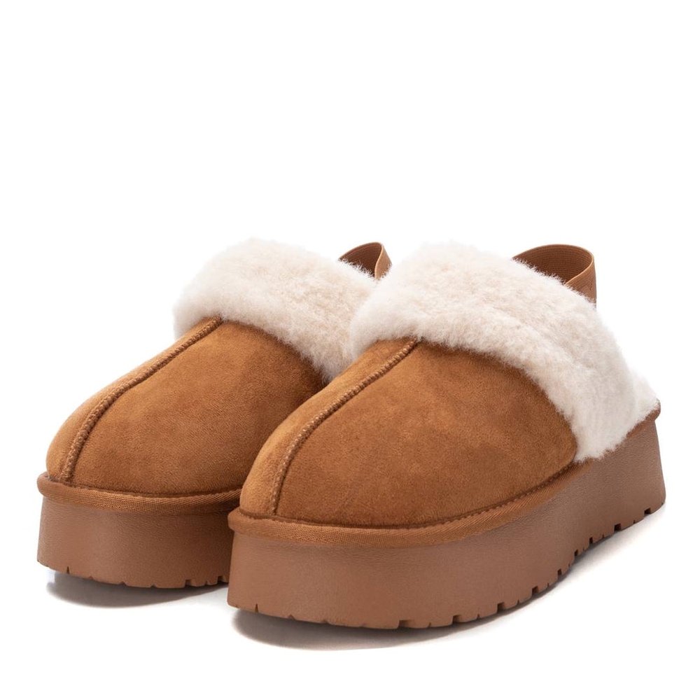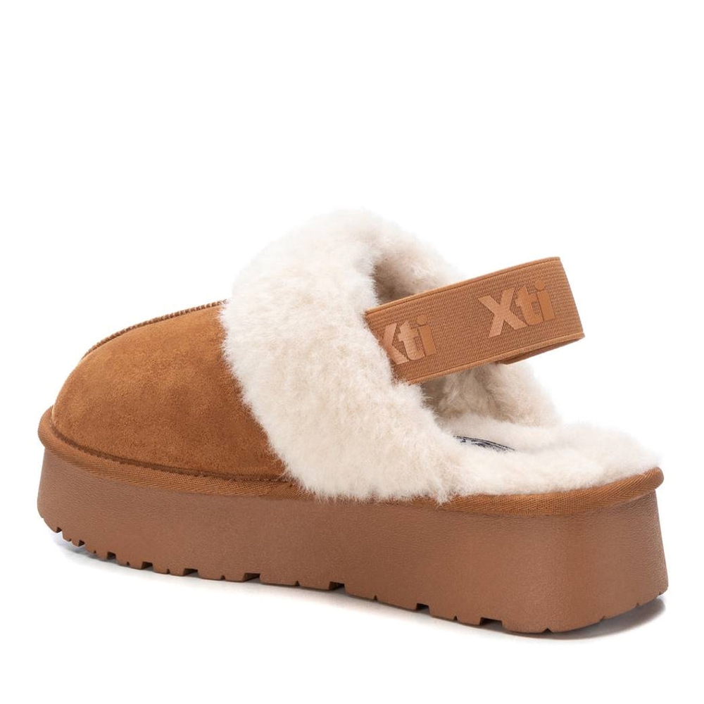Γυναικεία παντόφλες της ισπανικής εταιρείας Xti, σε κάμελ χρώμα. Είναι κατασκευασμένα από εξαιρετικής ποιότητας υλικά, εσωτερικά επενδυμένα με γούνα, και αντιολισθητική σόλα από πολυουρεθάνη για άνετο και σταθερό περπάτημα. Διαθέτουν πιστοποιητικό VEGAN από τον παγκόσμιο οργανισμό PETA. Μία άνετη επιλογή για να ολοκληρώσει το ντύσιμό σας.